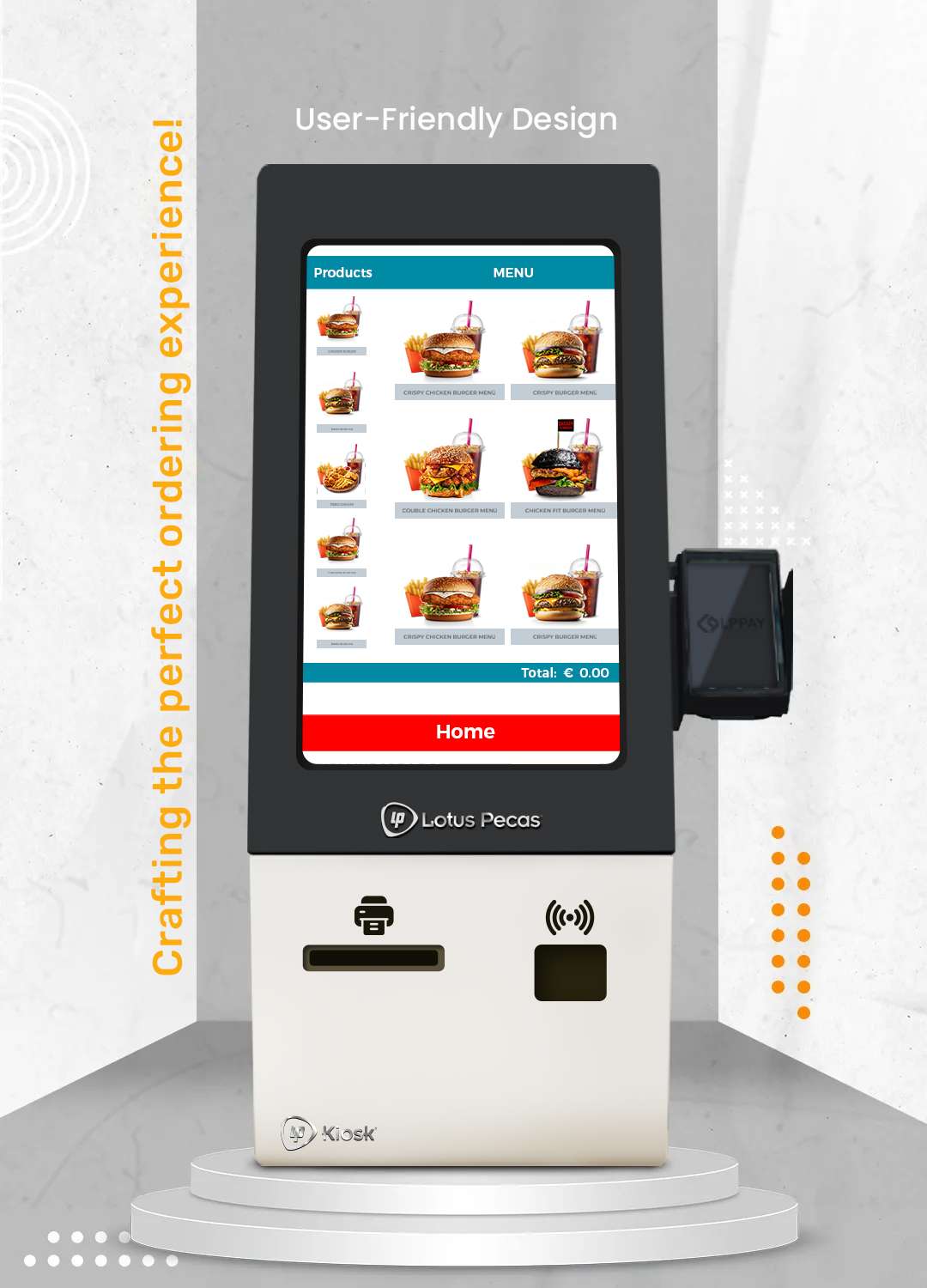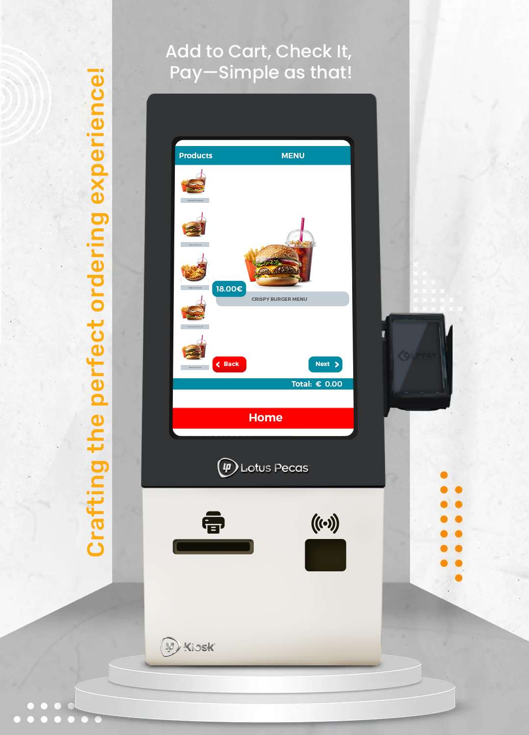 With Lp.Kiosk system, your customers can effortlessly place their orders within seconds. By simply touching the user-friendly interface, they can easily navigate through the menu, select their desired products, add them to their carts, and place an order. It’s as simple as that!